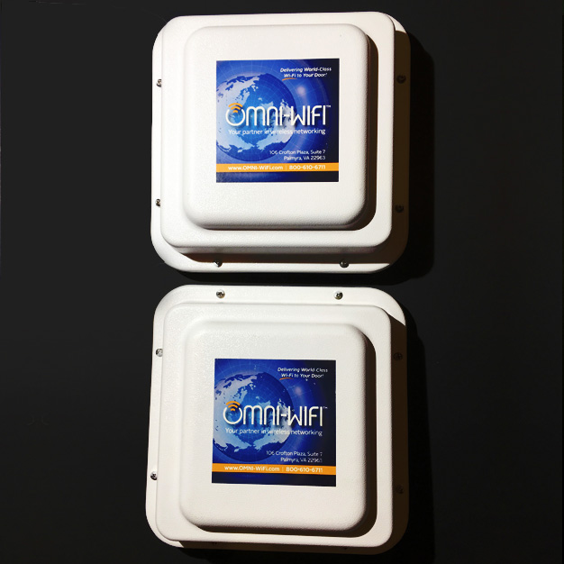 Standard Equipment: 2 802.11n high-sensitivity, custom-programmed radios; 2 robust, regulated power supplies; 2 150-degree, 14dbi panel antennas, OMNI-WiFi firewall with NAT, 2 Power-over-Ethernet (PoE) injectors; up to 200 feet of connecting outdoor cat-5e cable; 2 weathertight enclosures.